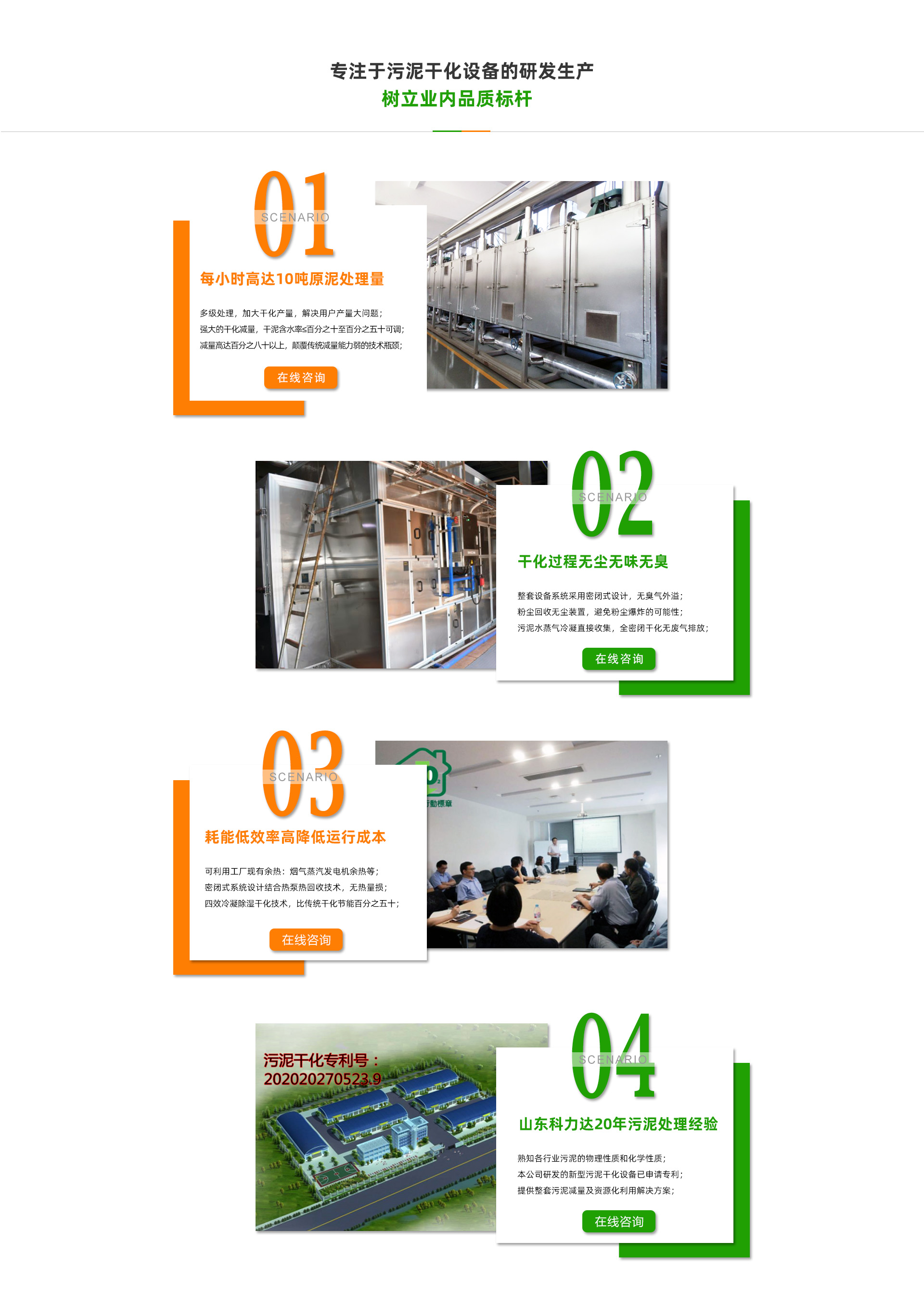 科力達智能裝備(山東)有限公司是一家幫助企業實現污泥減量的新型科技公司,專注污泥干化機,污泥干化設備,污泥烘干設備,污泥干燥設備,污泥烘干機,化工污泥烘干設備,電鍍污泥烘干設備,化工污泥干燥設備的研發,將企業生產帶來的污泥,通過壓濾機脫水,直接進入烘干設備,通過污泥水分蒸發,幫助企業實現大產量污泥減量。我們集研發、生產、銷售、安裝、服務為一體的專注污泥干化設備供應商。廣泛適用于:化工廠、電鍍廠、皮革廠、制藥廠...